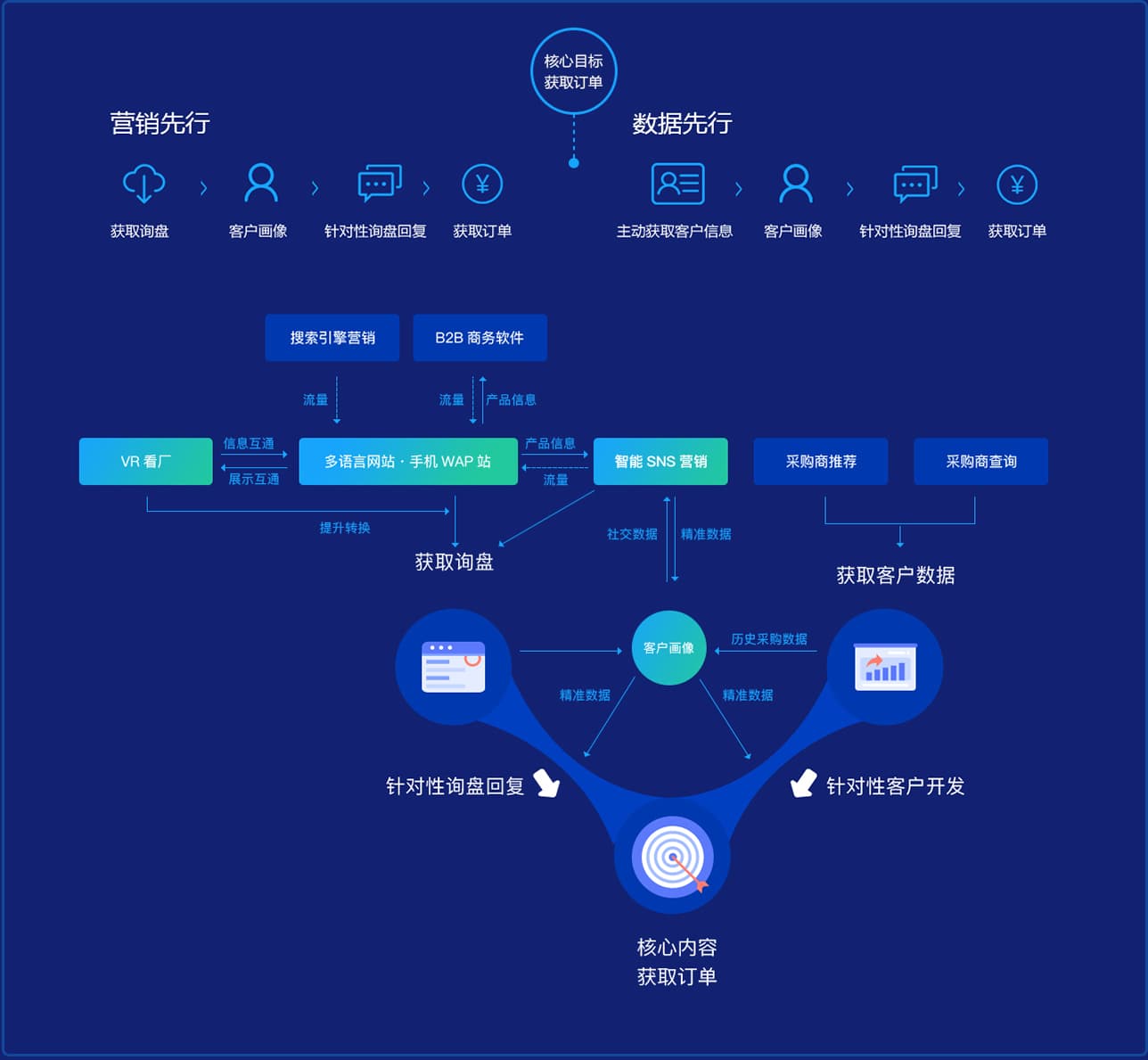 基于全球SNS大數據的一站式社交營銷,助力外貿企業智能挖掘客戶數據、智能互動,并智能達成轉化。包含跨平臺多賬戶管理體系、智能社交營銷體系、智能監控體系。